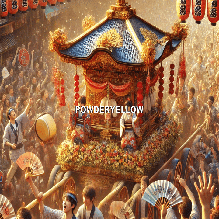神輿は賑やかな街をゆっくりと進む。子どもたちは笛を吹き、大人たちは太鼓を打つ。